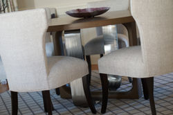 When our clients presented us with their one of a kind piece of art, the vision became clear. We created this open concept living room/dining room space around the bold punches of color in the artwork. Custom designed furniture pieces infuse the house with personality and sophistication bringing this entire space to life.