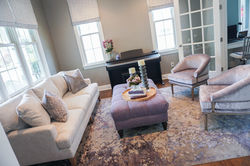 When my clients said they like purple, we started with this gorgeous abstract wool and silk custom rug that included the perfect purples. From there the room evolved into a beautiful transitional space with natural elements. Another small sitting room with tons of character.
