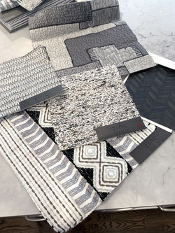 Scarsdale, NY Family Room. When our client expressed interest in designing their space around a Scandinavian style, we ran with it. We love the blacks and neutrals while layering plenty of texture. We absolutely love the herringbone black vinyl feature wall!